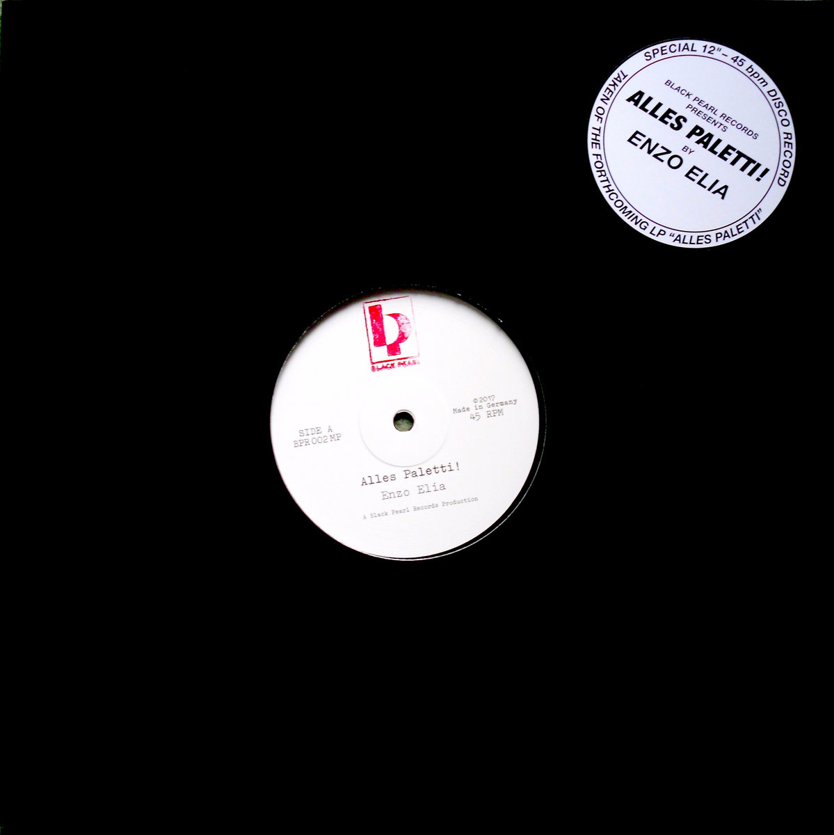 Ultra limited promo 12inch of the title track of Enzo Elia´s forthcoming album "Alles Paletti !", which will be relased on Black Pearl Records sooner or later.